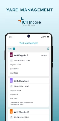 The Incore Yard Management is primarily used by employees working in warehouses, logistics centers, and construction sites. The application's main functionality is to help organize and optimize workflows by providing information on upcoming deliveries, the expected arrival time of vehicles, assigning docks, and an option to report issues with delivered items.