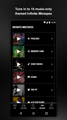 - Live tracklisting on channels 1, 2, all Infinite Mixtapes