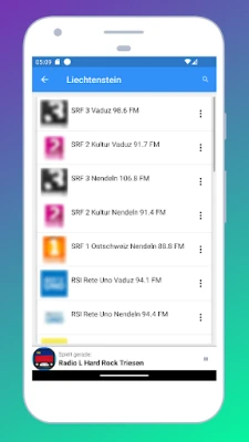 The Start screen and the interface of this application online radio stations of Liechtenstein is elegant, and the most important thing is that it is very easy to use. As a user, you don't have to look for normal radio Frequencies. Just touch the name of your favorite Liechtenstein radio and start listening live.