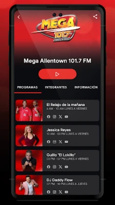 Listen in on the Nation’s Hottest Spanish Radio show “El Relajo de la Mañana” with VJ Mar, Alfa and Diamond. Tu Musica App and Mega Radio also feature the Top On Air Personalities in the nation such as: Daddy Flow, Guillo El Lokillo, DJ Jonathan, Tu Pana Luisito, Tony Rodriguez, Alex Sensation and featured guests.